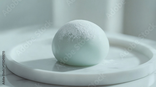 Single Mochi Ice Cream on White Marble Plate