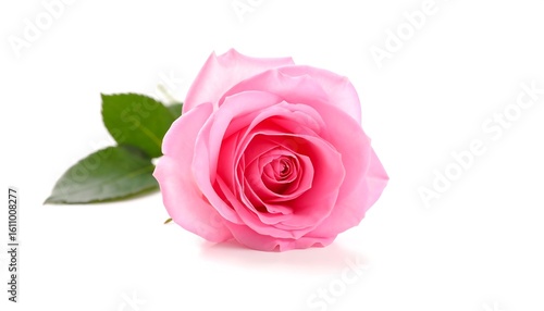 rose, pink, flower, beauty, nature, floral, fresh, pretty, elegant, single, delicate, bloom, green, leaf, stem, fragrant, soft, romantic, love, gift, spring, summer, isolated, closeup, studio, botanical, honed, gentle