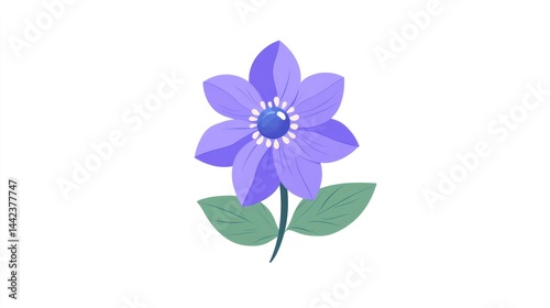 Single purple flower illustration on white background. Possible use Decorative element
