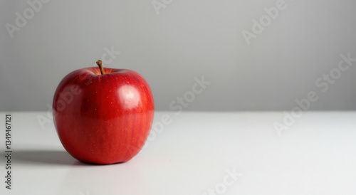 Single red apple on white surface against gray background. Fresh fruit concept for healthy eating and nutritional education campaigns