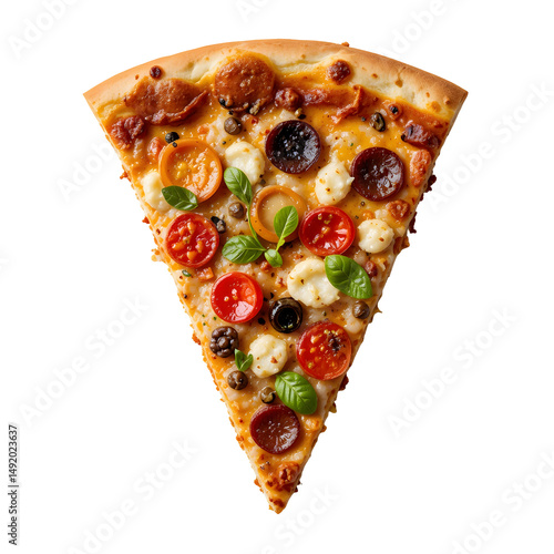 Single Slice of Pepperoni Pizza with Cheese Tomatoes and Olives