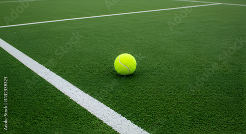 tennis, ball, court, green, sport, game, baseline, match, field, competition, activity, ground, leisure, tournament, play, bright, surface, lawn, race, recreation, equipment, training, exercise, professional, hobby, practice, single, white, line, pitch, turf, stadium, challenge, contest, closeup, outdoors, nobody, view, shot, fresh, season, area, blank