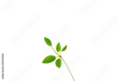 Single vibrant green plant, isolated on pure white, organic, stem