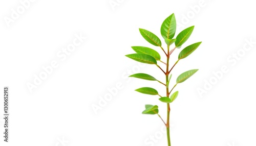Single vibrant green plant isolated on pure white background, graphic, vegetation