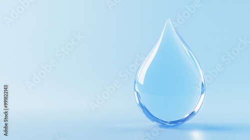 Single Water Drop on a Blue Background, 3D Rendering, Minimalist, Water, Blue Background, 3D, Drop