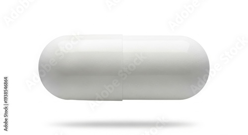 Single White Medical Capsule Pill Product Shot for Healthcare and Pharmacy isolated on White Background