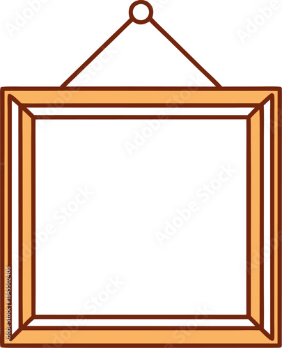 Single-color line art of a simple, thin picture frame hanging on an empty wall, white background.