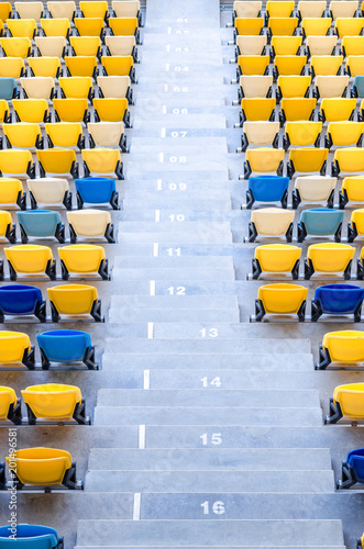 stadium, sport, bench, seating, empty, plastic, green, colours, grass, field, game, event, competition, chair, football, soccer, seat, public, arena, line, place, row, racked, blank, number, stage, section, reserve, coach, blue, pattern, crowd, fan, venue, yellow, race, background, outdoors, sitting, room, tribune, object, presentation, strategy, stair, trainer, sportive, lviv, ukraine