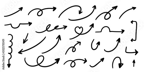 Sketch arrow vector set. Hand drawn arrows, mark point icon design collection for business and education design element.
