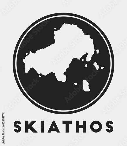 Skiathos icon. Round logo with island map and title. Stylish Skiathos badge with map. Vector illustration.