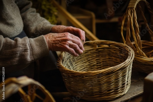 Skilled artisan weaving a traditional basket in a cozy workshop during the afternoon