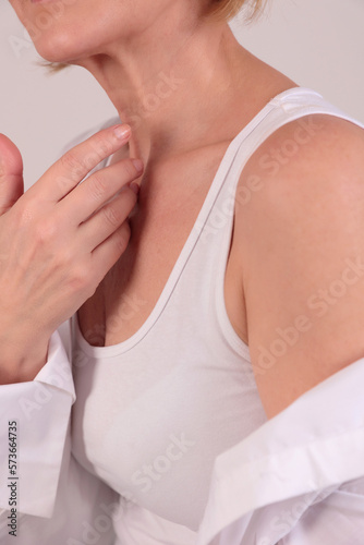 mature, skin, care, woman, neck, control, beautiful, touching, 50s, ageing, middle-aged, beauty, body, bright, healthy, caucasian, clean, closeup, face, female, gland, shoulder, throat, thyroid, hydratation, nourishment, touch, skincare, cream, moisturise, soft, hand, menopause, senior, rejuvenation, ageing, pampering, lifting, happy, smiling, natural, well-being, wrinkle, moisturiser