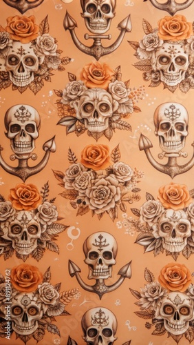 pattern, seamless, wallpaper, vintage, design, ornament, decoration, art, texture, retro, decor, style, antique, element, skull