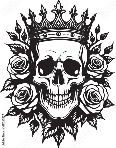 Skull Queen Silhouette SVG | Gothic Royalty Vector Clipart Crowned Skull Woman Vector | Dark Queen Silhouette SVG Skull Queen SVG Design | Elegant Gothic Skeleton Clipart Skeleton Queen Vector | Sk