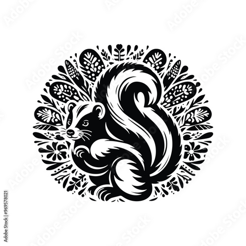 badger, skunk, raccoon, squirrel, weasel, little, ferret, striped, tail, fur, small, rodent, animal, africa, safari, mammal, wildlife, zoo, pet, wilderness, fauna, folk, art, floral, flower, ethnic, silhouette, nordic, scandinavian, folklore, cultural, native, decoration, tradition, ornate, ornament, shadow, cut-out, black-and-white, abstract, isolated, print, badge, shield, emblem, contour