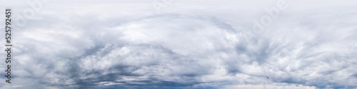 Sky panorama before rain with heavy Cumulonimbus clouds. Hdr seamless spherical equirectangular 360 panorama. Sky dome or zenith for 3D visualization and sky replacement for aerial drone 360 panoramas