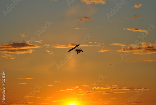 sky, sunset, flying, fly, deltaplane, ultralight, clouds, aviation, sky, summer.