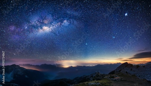 sky, mountain, landscape, sunset, sunrise, nature, cloud, night, mountain, sun, cloud, blue, morning, hill, star, dawn, beautiful, fog, light, space, evening, view, star, beauty, vale