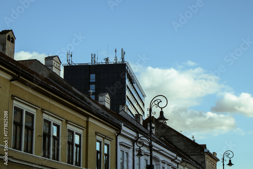 skyscraper in old town