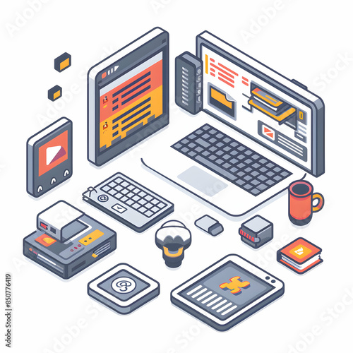 Sleek 3D Flat Icon: Programming Interface and Code Integration with Copy Space for Website Banners Concept in Doodle Line Cartoon Style