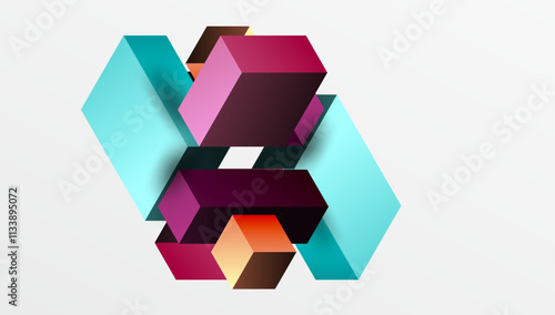Sleek abstract design featuring isometric 3D blocks in a clean, modern composition. Perfect for tech-inspired themes, with vibrant colors and geometric precision