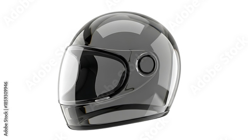 Sleek and modern dark grey full-face motorcycle helmet with a clear visor, designed for maximum head protection and rider safety on the road, isolated on a clean white background
