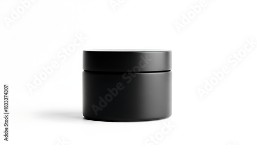 white background, black, jar, cosmetic, container, cardboard box, beauty, cream, skincare, lotion, gel, ointment, pot, bottle, blank, empty, template, design, brand, branding, studio, isolated, minimalist, simple, round, object, luxury, elegant, refined, shadow, highlight, modern, still, product, merchandise, display, marketing, advertisement, presentation, dark, matte, smooth, generic