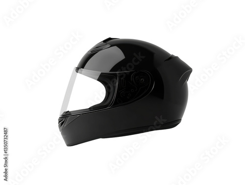 Sleek Black Motorcycle Helmet on White Background: Modern Safety Gear for Riders