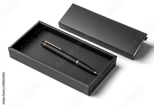pen, box, black, gift, elegant, sleek, stylish, sophisticated, modern, minimalist, writing, stationery, office, desk, luxury, premium, presentation, cardboard box, product, design, matte, smooth, rectangular, simple, clean, professional, corporate, business, executive, high-end, quality, craftsmanship, detail, precise, refined, classic, timeless, subtile, impact, impressive, attention, exclusive, superior, impeccable, flawless, honed, complete, outstanding, exceptional