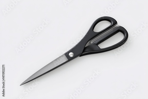 Sleek black scissors on a white background. Perfect for cutting paper, fabric, or other materials.