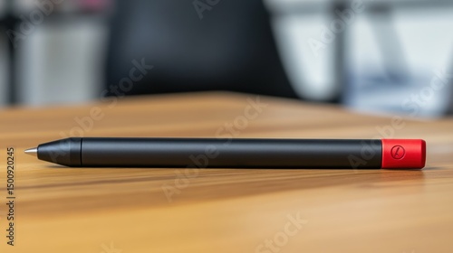 stylus, pen, digital, drawing, writing, tool, black, red, wooden, table, surface, matte, minimalist, design, technology, contraption, electronic, office, work, creative, artist, illustration, graphic, vector, isolated, product, closeup, object, background, simple, modern, clean, professional, image, copy space, still life