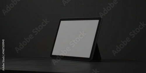 tablet, black, dark, surface, modern, technology, device, digital, display, blank, screen, portable, electronic, contraption, studio, product, empty, grey, angled, sleek, tech, design, presentation, photo, image, background, contrast, desktop, matte, hardware, equipment, electronic