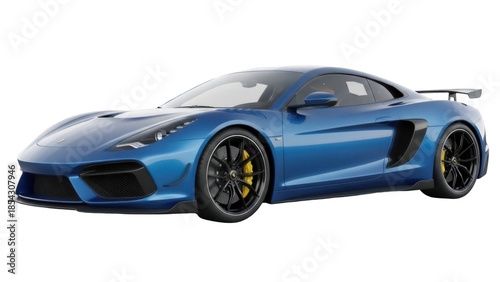 Sleek blue sports car isolated PNG on transparent background, modern automotive design for transportation and high-performance vehicle concepts