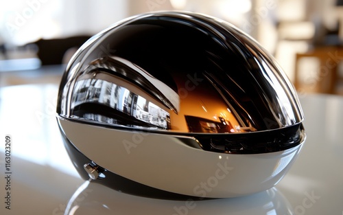 helmet, chrome, reflective, design, futuristic, modern, glossy, shiny, metallic, smooth, curve, shape, style, technology, innovation, object, gear, equipment, safety, protection, headgear, sport, bike, bicycle, cycling, racing, automobile, vehicle, motorbike, motorcycle, transport, travel, fashion, accessory, stylish, elegant, contemporary, aesthetic, surface, image, glasses, white, isolated