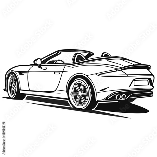 cabrio, sports car, automotive, vehicle, outline, black-and-white, modern, luxury, design, speed, performance, sleek, aerodynamic, wheel, tire, headlamp, rear lamp, exhaust, coupe, roadster, illustration, graphic, clean, simple, iconic, stylish, elegant, powerful, dynamic, exterior, profile, backview, half face, studio shot, graphic design
