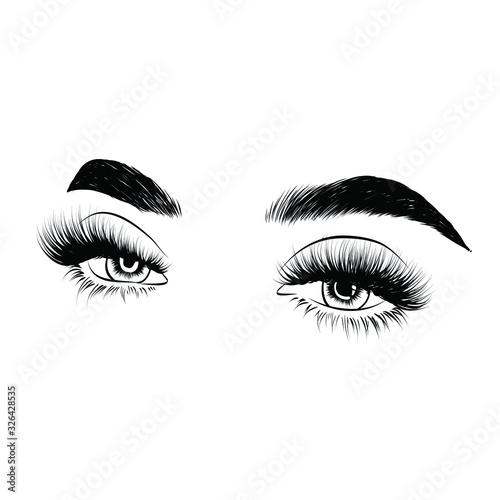 Sleek fashion illustration of the eye with luxe makeup and natural eyebrow. Hand drawn vector idea for business visit cards, templates, web, salon banners,brochures. Microblading visit card