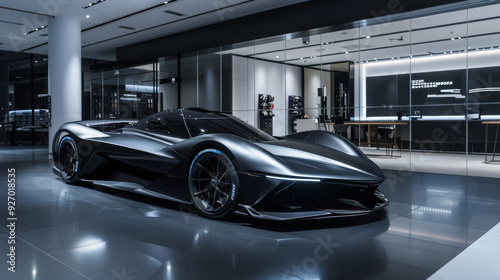 electric, matte, black, aerodynamic, sleek, showroom, modern, engineering, innovation, body, vehicle, automotive, display, design, futuristic, luxurious, technology, car, transport, motor, performance, elegant, sophisticated, racing, speed, contemporary, stylish, advanced, luxury, sport, power, fast, cutting edge, efficiency, auto