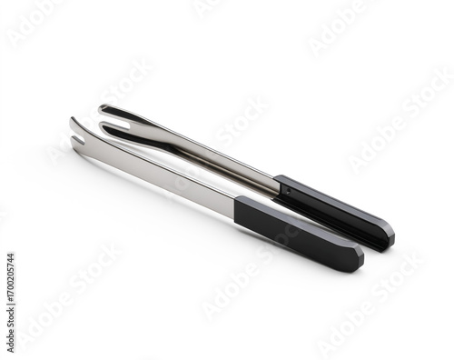 Sleek Modern Barbecue Tongs with Black Accents on White Background.