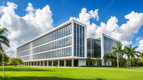 architecture, building, government, modern, design, sleek, line, lawn, sky, cloud, clean, blue, greenery, exterior, structure, city, outdoors, urban, facades, minimalist, contemporary, professional, elegance, construction, symmetry, office, landscaping, space, landmark, public, civic, environment, administration, technology, square, daylight, sustainable, peaceful, luxury, tower block, nature, street, window, city landscape, future, high technology, environmentally friendly, innovation