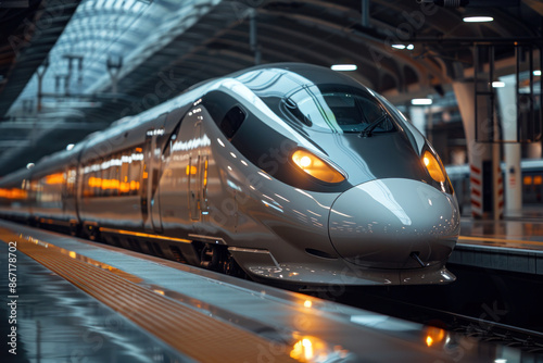 Sleek Modern High-Speed Train at a Well-Lit Urban Station