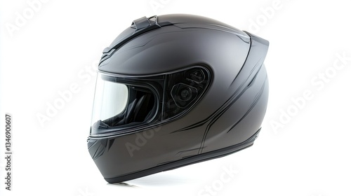 Sleek new modern motorcycle helmet isolated on a white background, showcasing its aerodynamic design and high-tech features.