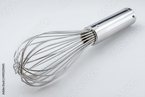 Sleek silver whisk, perfect for baking and culinary creations. A professional tool for kitchen use.