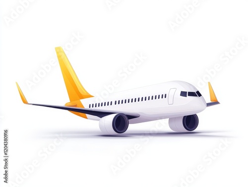 Sleek white and yellow airplane isolated on clean background, showcasing aviation innovation, modern air travel, and futuristic transportation themes in dynamic illustration