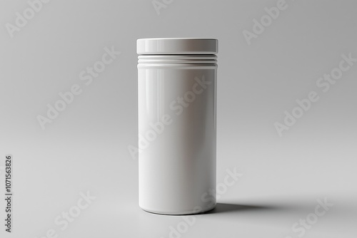 Sleek white container standing upright on a simple gray background in a minimalist setting