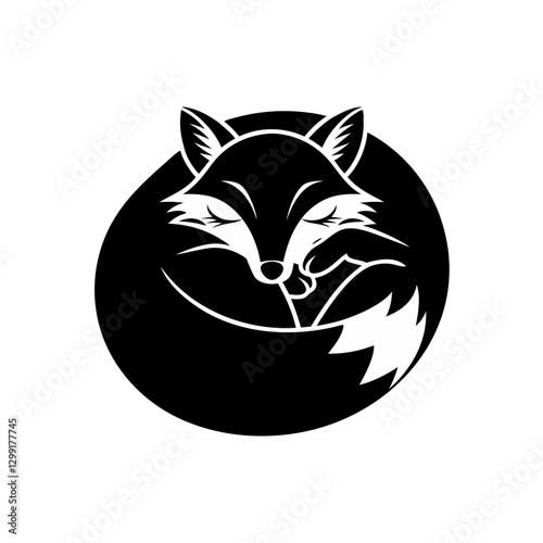 fox, sleeping, silhouette, tranquil, animal, design, black-and-white, wildlife, graphic, serene, peaceful, curled, illustration, nature, logotype, abstract, minimal, simple, relaxation, calm, tail, ear, forest, fauna, nocturnal, night, cute, adorable, cartoon, line art, resting, minimalism