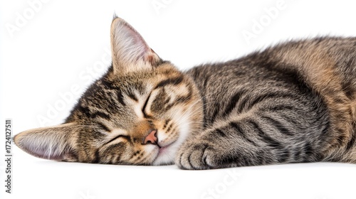 Sleeping Tabby Kitten on White Background - Adorable tabby kitten peacefully sleeping on a pure white background. Perfect for pet product websites or blogs