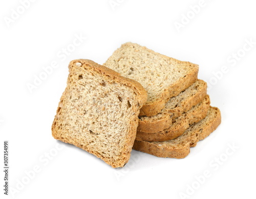 Slices of wholemeal bread isolated on a white background in close-up (high details)