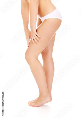 woman, isolated, white, female, beauty, underclothing, thigh, touch, hand, palm, sensuality, beautiful, leg, care, health, attractive, foot, bare, treatment, smooth, young, girl, body, long, skin, spa, sexy, standing, panty, slim, pedicure, voluptuous, knee, healthy, thin, hygiene, grace, toe, freshness, tiptoe, cosmetic, people, figure, joint, background, caucasian, being, relax, nature