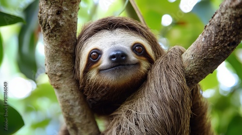 Sloth in Panama. Slow and Friendly Beast in the Rainforest Habitat