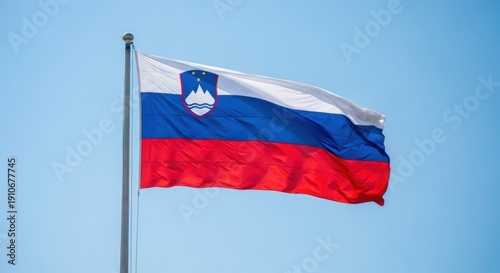 Slovenian Flag Waving in Clear Daylight